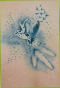 AirbrushTattoos sind da die täuschend echte Variante. Hier ist der Körperschmuck mit schwarzer Tattoofarbe und einer AirbrushPistole aufgesprüht.