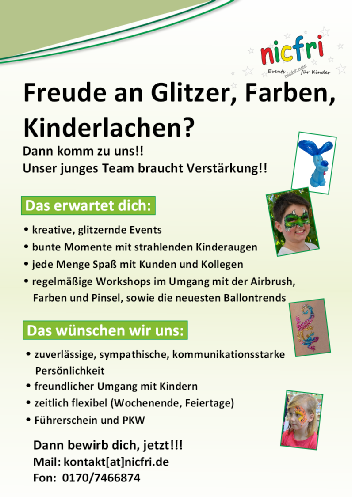 Nicole Fritsche ● Lindenweg 11● 95499 Harsdorf ● Tel: 0170/7466874 ● E-Mail: kontakt@nicfri.de